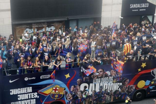 接下来就是巴萨的三年重要冠军空窗期,以及新冠疫情的肆虐,2020至2022年的三年时间里,巴萨只夺得了一座国王杯冠军,其间经历了欧冠赛场被拜仁痛击的苦涩,以及梅西离开的阵痛。如今在哈维率领之下全新启航的巴萨,终于以一座西甲冠军作为新时代的美好开端,俱乐部也开启了多年未见的庆祝巡游活动,15日这天的下午,巴萨男足与女足队伍一起出席了俱乐部官方安排的大巴巡游,数万拥趸走上街头,将巴塞罗那这座城市染成了久违的红蓝色。